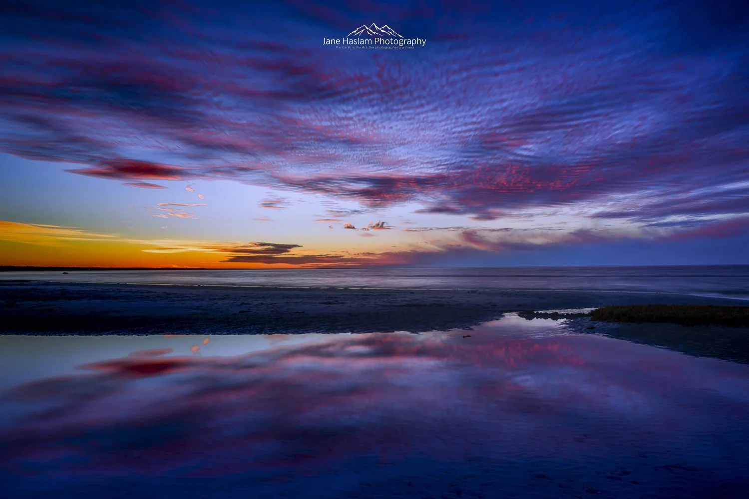 Beaches with a calm sea can be fairly featureless spaces but with a perfect amount of cloud a large tide pool I had the perfect foreground as golden hour faded into blue hour at West Dennis on Cape Cod.