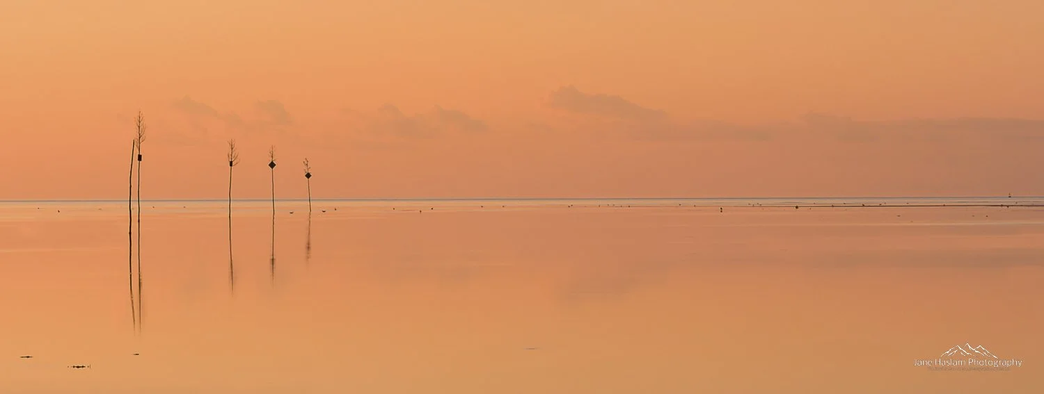 This was one of those occasions where, to my mind, all the elements came together almost perfectly. The boats, the birds, the pastels, the beautiful curve in the clouds just belong together despite the sun setting way outside the bounds of the photograph.
