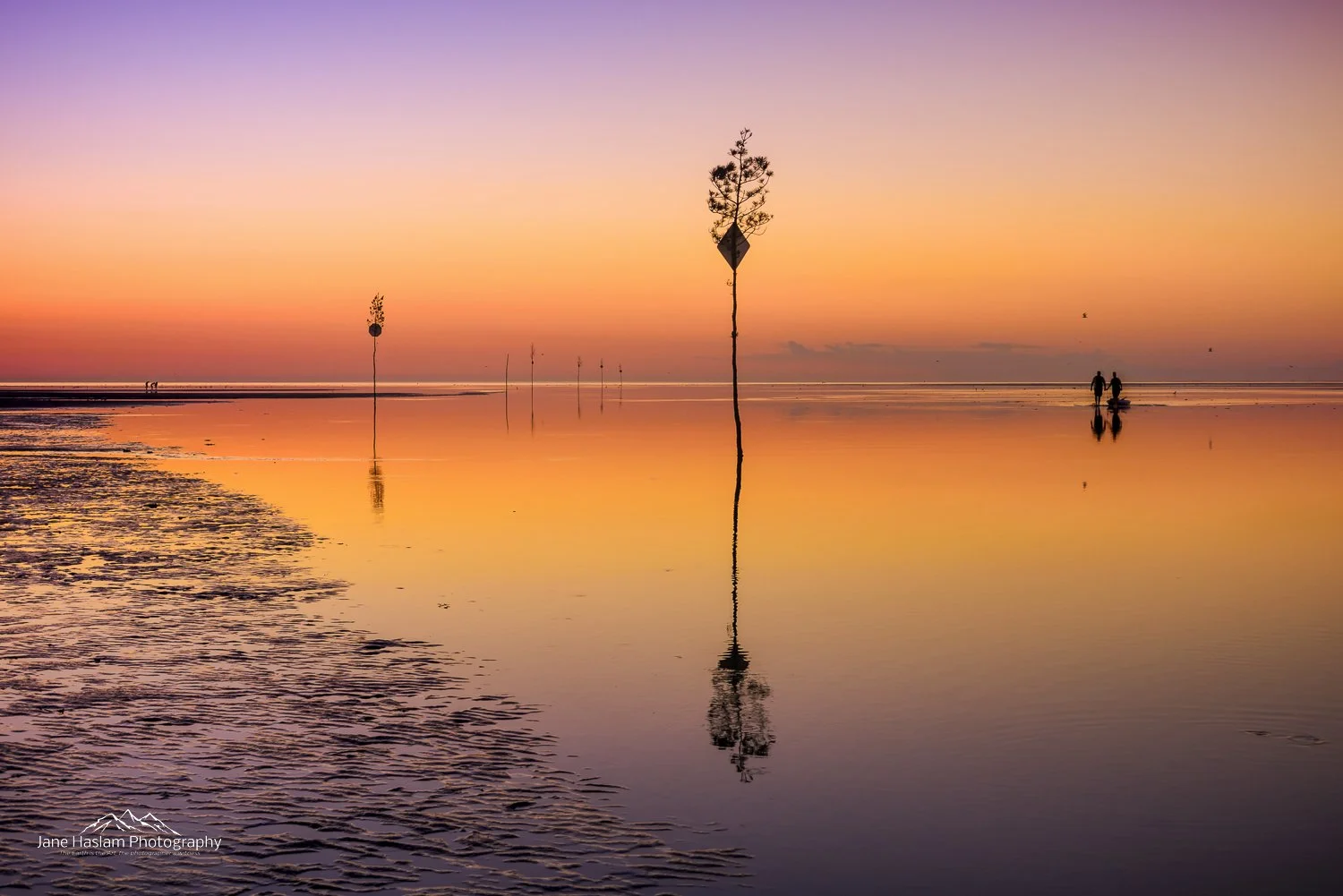 This was taken after the most gorgeous blue sky Summers day on Cape Cod, but it’s an example of how cloudless skies don’t always make for the most spectacular sunsets. However what I did have going for me were calm reflective conditions, shallow water from the low tide and some foreground provided by the clam trees that are used to mark the channel. I then got lucky with the couple who were slowly walking back to shore and I just had to wait till they reached a point which gave the overall scene a nicely balanced feel.